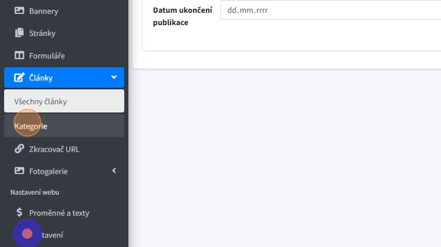 6. "Datum ukončení publikace" - kdy bude článek na webu zneviditelněn.