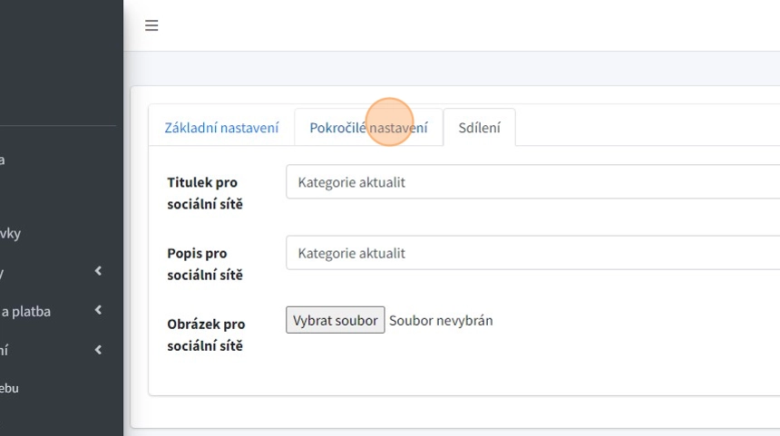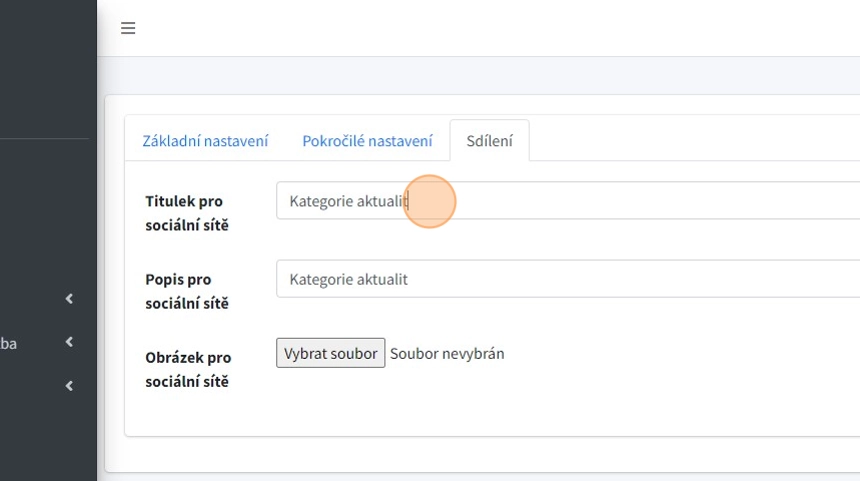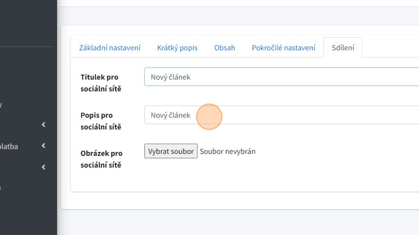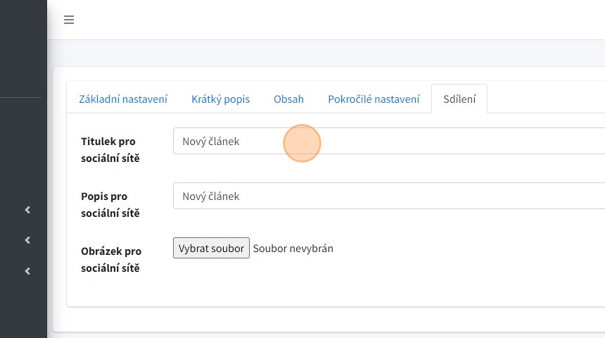 12. "Obrázek pro sociální sítě" - - pole pro nahrání obrázku, který se zobrazí při sdílení na sociálních sítích