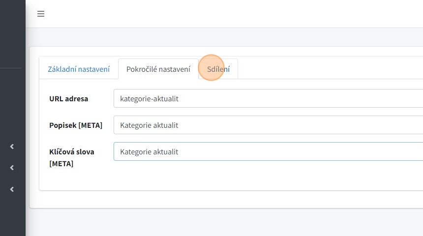 4. Po vyplnění názvu a stisknutím tlačítka "Uložit" vytvoříme kategorii a získáme přístup pokročilým možnostem editace kategorie.