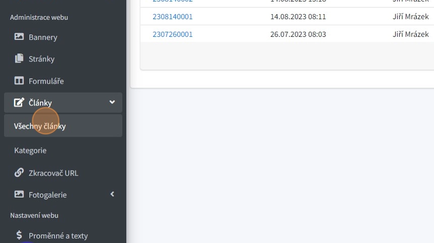 Tip: V modulu články lze vytvářet veškeré kategorie článků a do nich následně řadit jednotlivé články. Na rozdíl od stránek mají články možnost nastavení data a délky publikace na webu. Články se zpravidla používají u webu který obsahuje aktuality, novinky, nebo blog.
