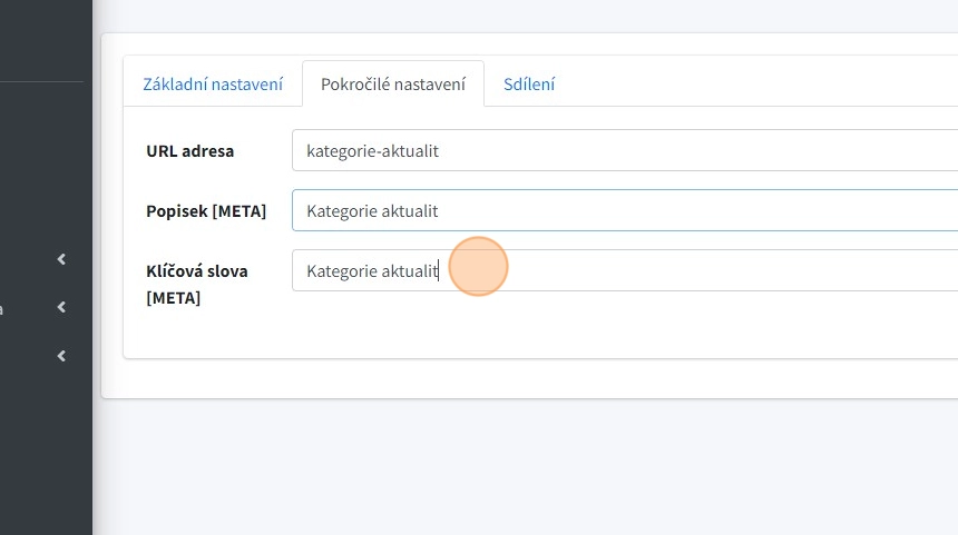 8. "Klíčová slova [META]" pole pro vyplnění META klíčových slov, které používají vyhledávače při indexaci
