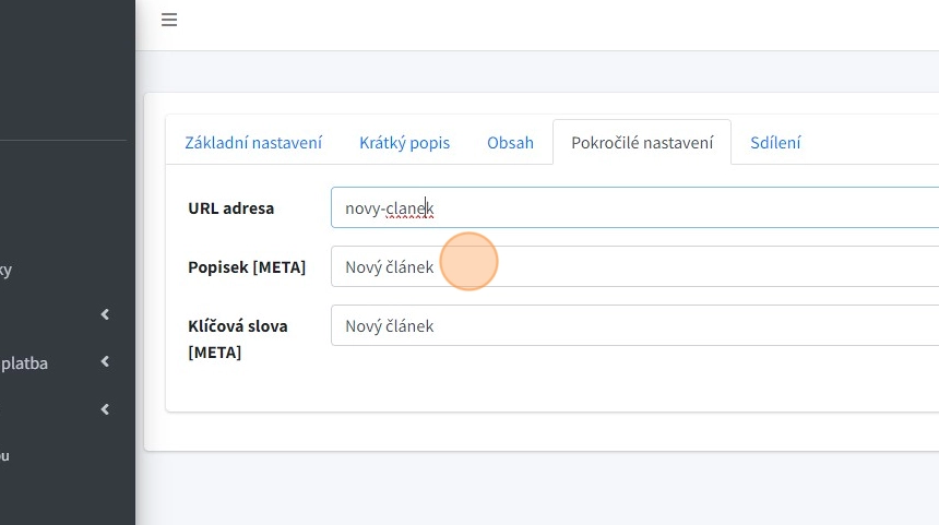 7. "Popisek [META]" - pole pro vyplnění META popisku, který používají vyhledávače při indexaci