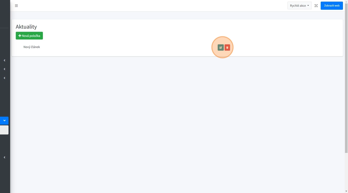 21. Stávající články lze upravovat pomocí modrého tlačítka pro editaci.