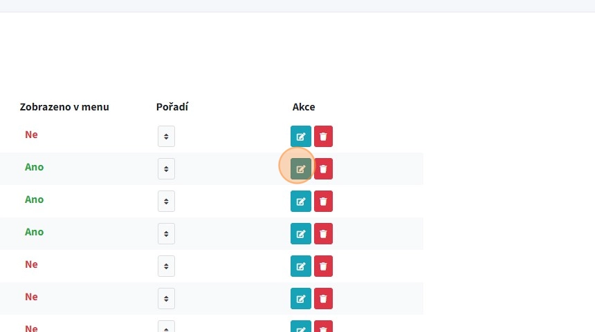 18. Modré tlačítko ve sloupci akce slouží k editaci podstránky