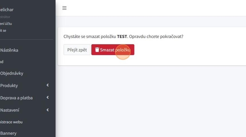 20. Smazání je nutno potvrdit tlačítkem "Smazat položku"