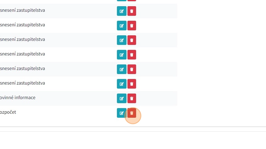 12. Pro editaci jednotlivých záznamů úřední desky slouží modré tlačítko v pravém sloupci.