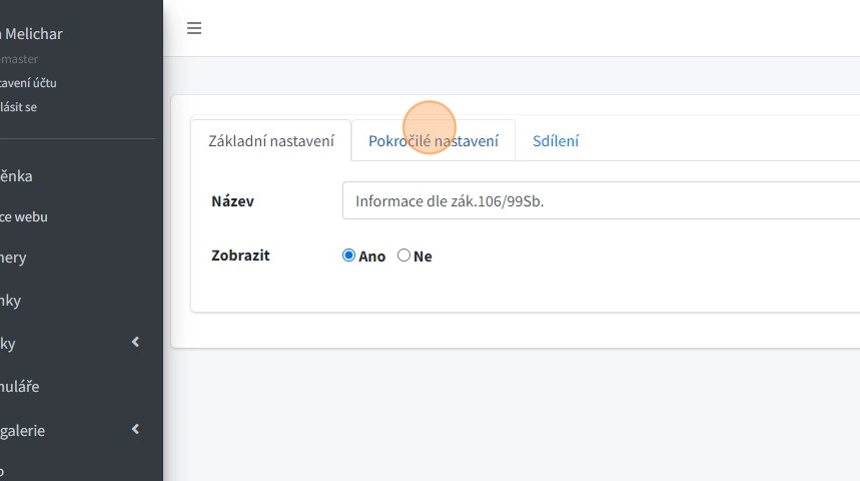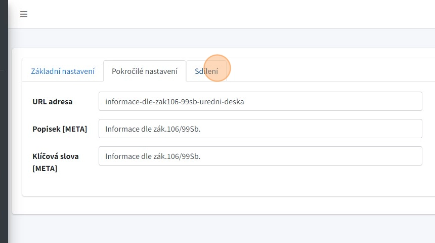 6. V záložce "Sdílení" lze nastavit popisek a nahrát obrázek pro sdílení na sociální sítě.