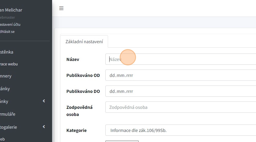 3. Pole "Název" pro vyplnění názvu záznamu