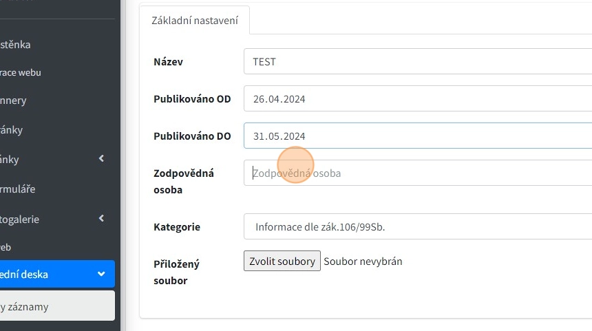 6. "Zodpovědná osoba" - osoba, která záznam do úřední desky vložila.