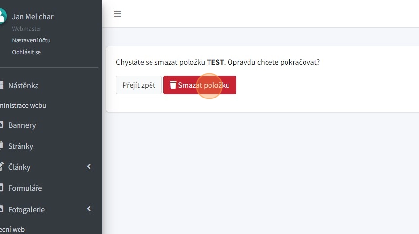 14. Smazání je nutno potvrdit tlačítkem "Smazat položku"