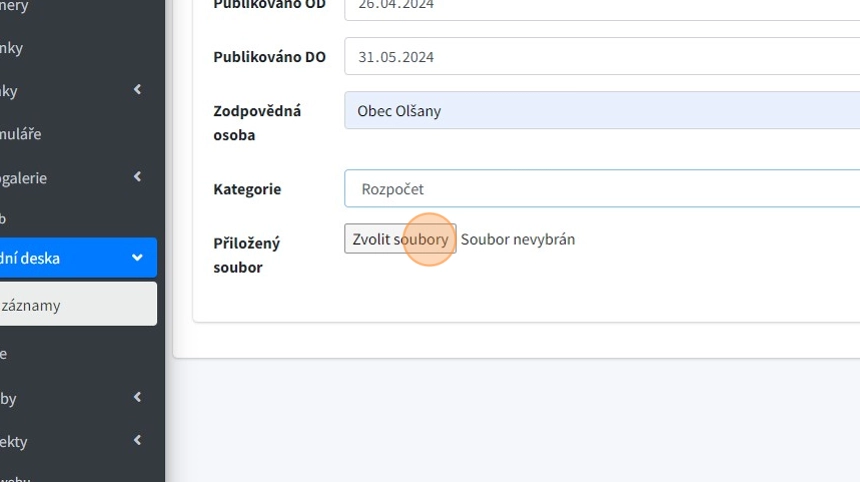 8. "Přiložený soubor" - do záznamu lze přiložit soubor(y) v různých formátech (PDF, DOCX, XLS...)